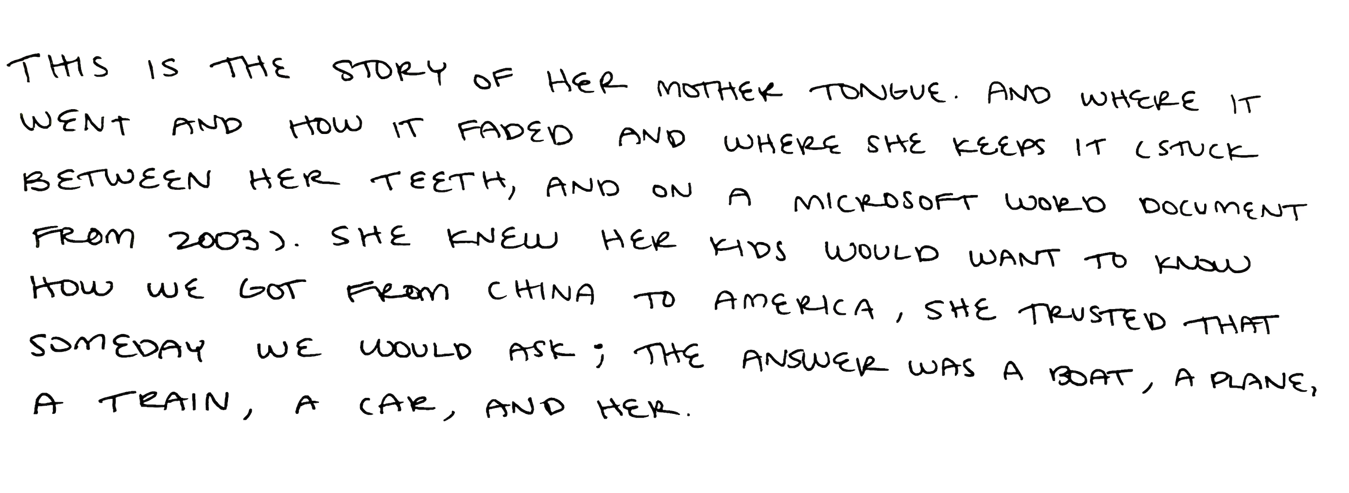 Grandma hums of grace and glory but there is no glory in our immigrant story there’s only her, me, and my mom who is scared of becoming her mom, but isn’t that what we all become unknowingly?