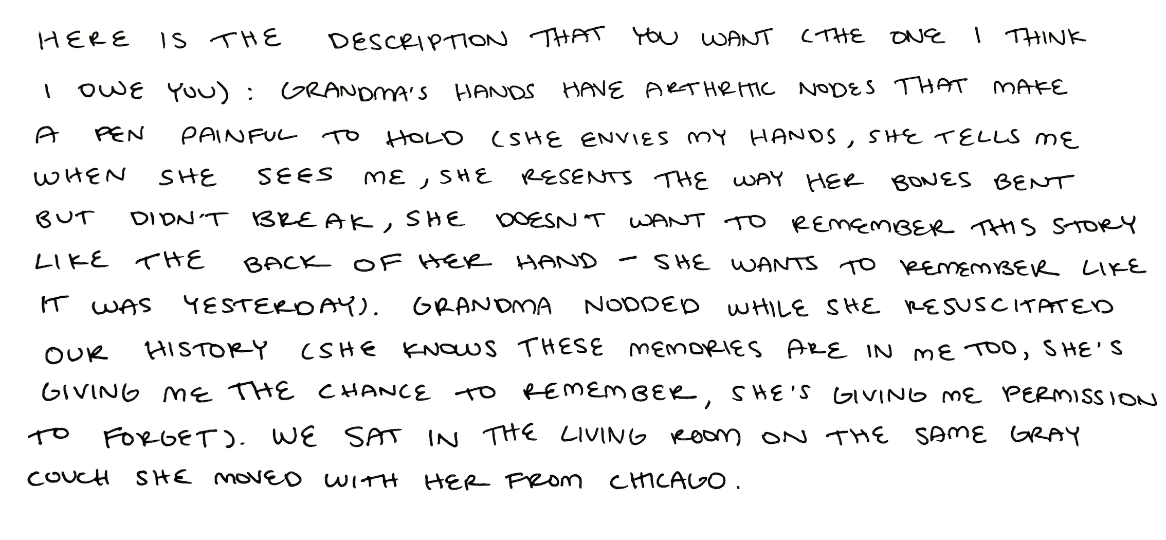 Grandma stands in the kitchen and whispers that she hates herself; Grandma thinks she’s useless.